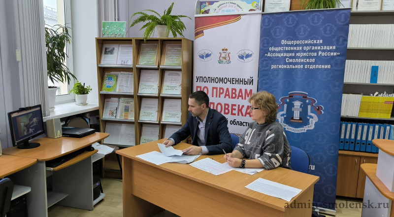 В рамках плановых мероприятий по правовому просвещению и оказанию бесплатной юридической помощи сотрудниками аппарата Уполномоченного по правам человека в Смоленской области совместно с членами Смоленского регионального отделения Ассоциации юристов России на базе ГБУК «Смоленская областная универсальная научная библиотека им. А.Т.Твардовского» проведен прием жителей Краснинского муниципального округа.