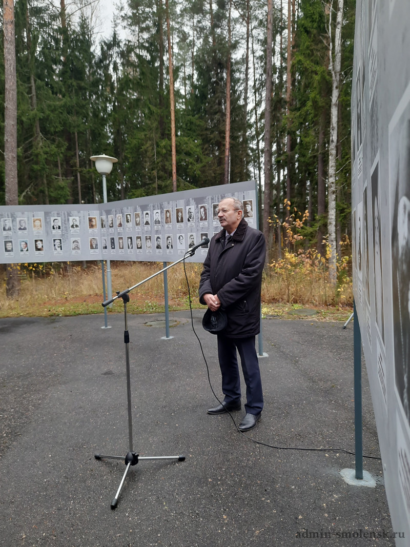 Уполномоченный по правам человека в Смоленской области Геннадий Петрович Сенченков принял участие и выступил с речью на мероприятии, посвященном увековечению памяти жителей Смоленска и Смоленской области, пострадавших в годы репрессий, которое проводилось 30 октября 2025 года на территории Мемориального комплекса Катынь» – филиала Федерального государственного бюджетного учреждения культуры «Государственный центральный музей современной истории России».